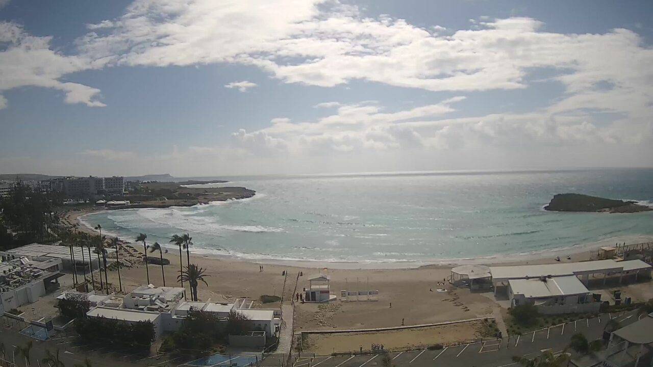 Ayia Napa › South-east: Nissi Beach is a streaming webcam view for Ayia Napa, Cyprus, Cyprus. More information is available on the source page: https://vassosnissiplage.com/live-camera/.