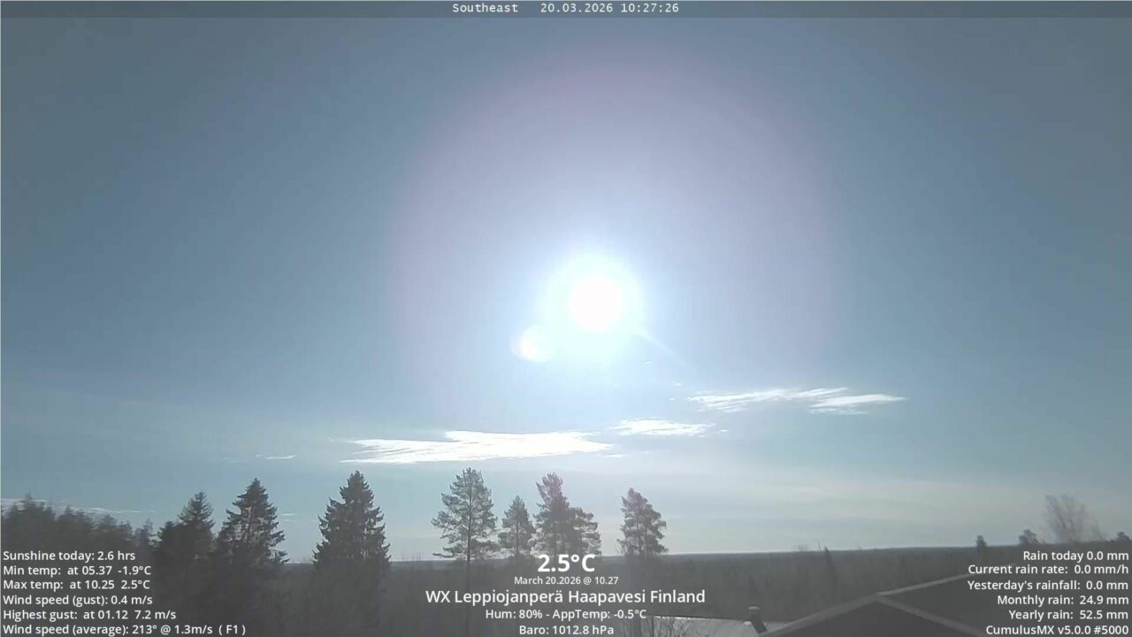 Haapavesi: Jussila Weather Leppioja – Finland is a video webcam view for Haapavesi, Mainland Finland, Finland. More information is available on the source page: https://jussilanet.com/.