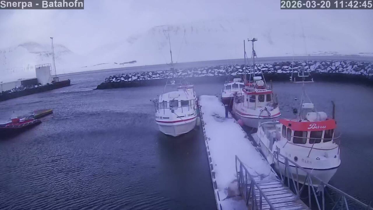 Westfjords › North-east: Þingeyri is a streaming webcam view for unknown, Westfjords, Iceland. More information is available on the source page: https://www.snerpa.is/allt_hitt/vefmyndavelar/Thingeyri_-_Smabatahofn/.