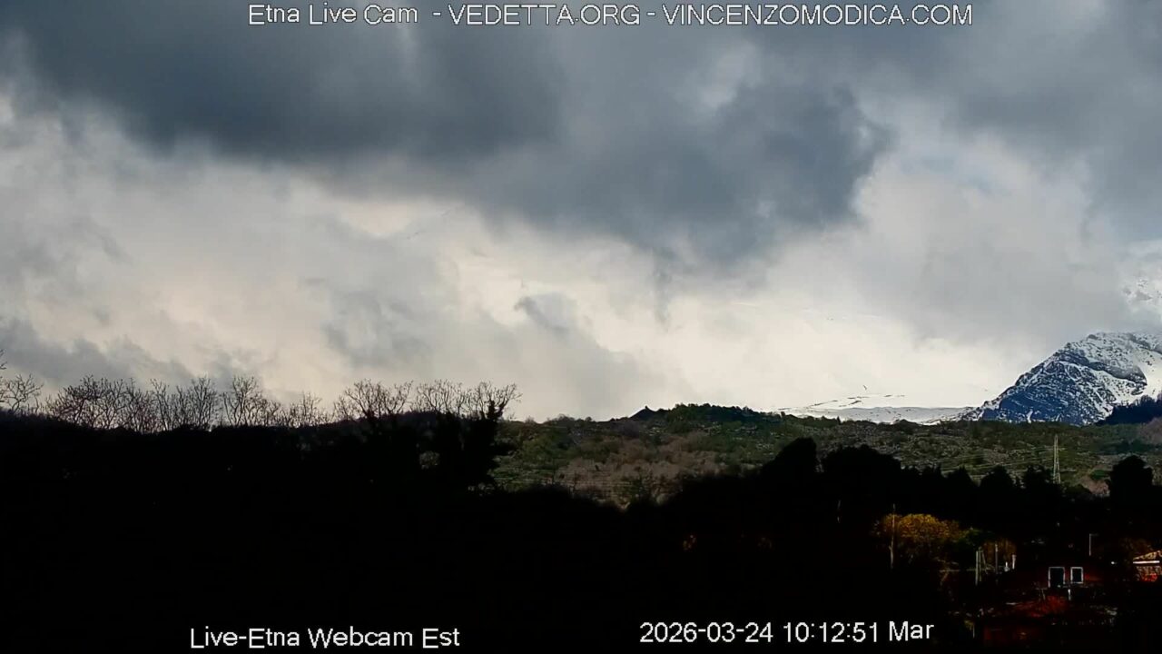 Milo › East: Mount Etna is a streaming webcam view for Milo, Sicily, Italy. More information is available on the source page: https://vedetta.org/webcam/italia/sicilia/catania/vulcano-etna-est/.