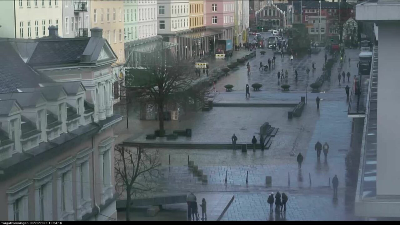 Bergen: Torgallmenningen, Norway is a video webcam view for Bergen, Vestland, Norway. More information is available on the source page: https://www.bt.no/nyheter/i/557y1/Torgallmenningen.