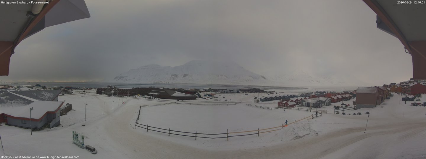 Longyearbyen › North-west is a still webcam view for Longyearbyen, Svalbard, Norway. More information is available on the source page: https://webcam.io/webcams/Pq5B0P.