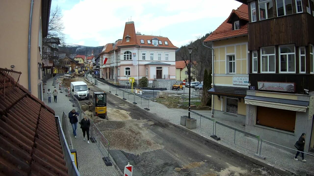Karpacz › West is a streaming webcam view for Karpacz, Lower Silesian Voivodeship, Poland. More information is available on the source page: https://karpacz-deptak-kamera.webcamera.pl/.
